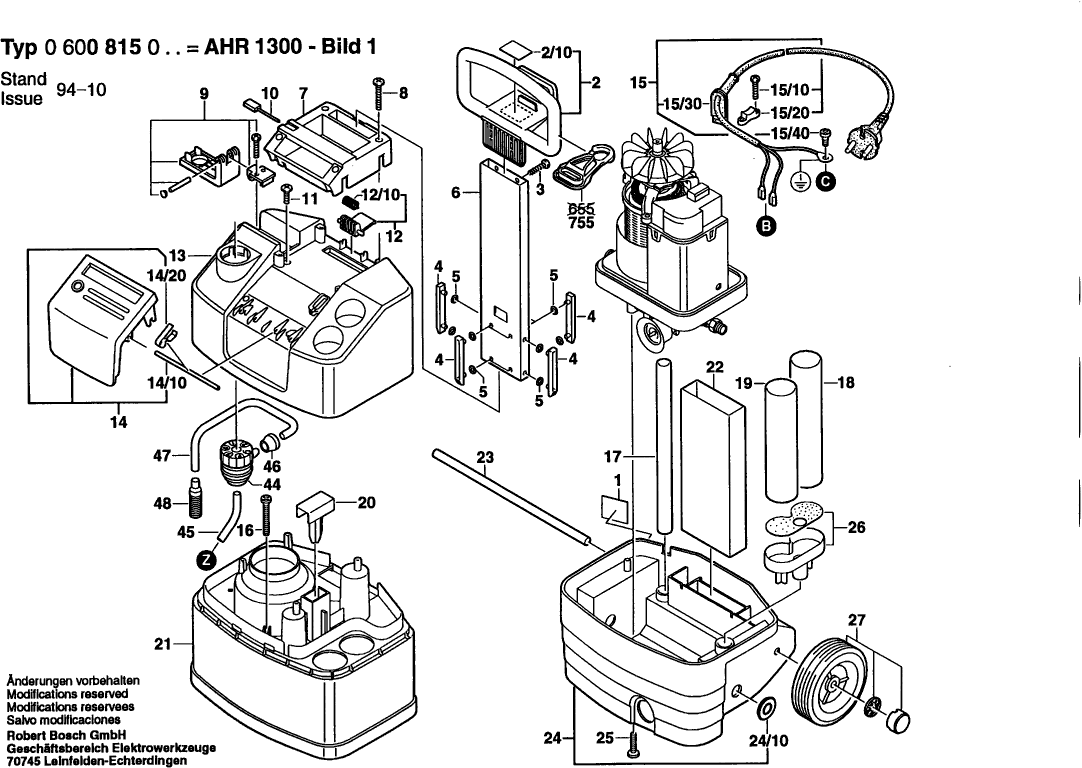 Aquí encontrará todas las piezas y dibujos técnicos disponibles de 'Bosch 0600815064 ( AHR1300 )'. Desde aquí podrá pedir todas las piezas deseadas directamente. Para muchas piezas de repuesto, es necesario pasar un pedido al fabricante. Dependiendo de la marca, el plazo de entrega puede variar entre una y cuatro semanas. Toda la información que tenemos está en nuestro sitio web. No podremos aconsejarle sobre lo que necesita hasta que entregue la máquina para su reparación. Tenga en cuenta lo siguiente a la hora de cursar su pedido: