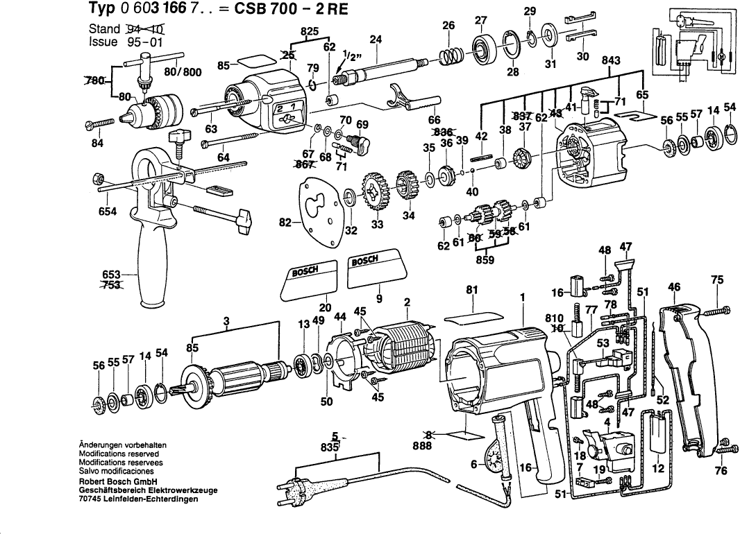 Lista de las piezas de repuesto de Bosch 0603166703 ( CSB700-2RE )