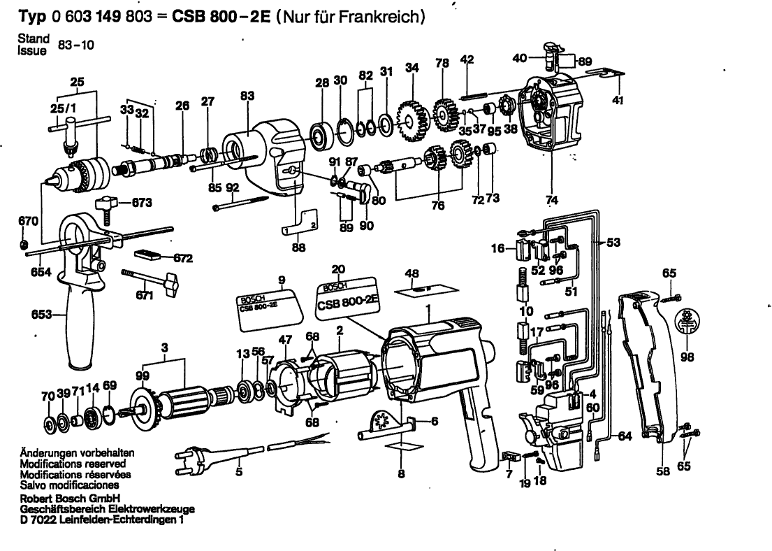 Lista de las piezas de repuesto de Bosch 0603149803 ( CSB800-2E )