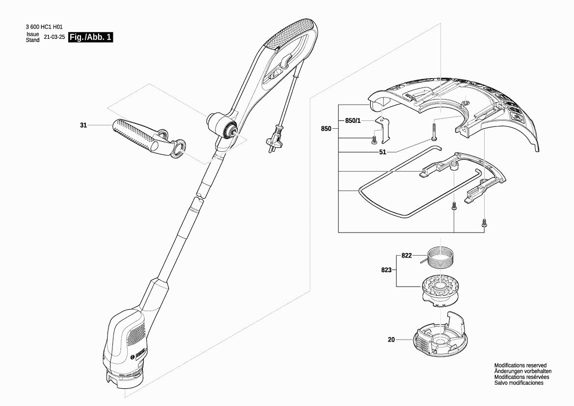 Lista de las piezas de repuesto de Bosch 3600HC1H31 ( EASYGRASSCUT23 )