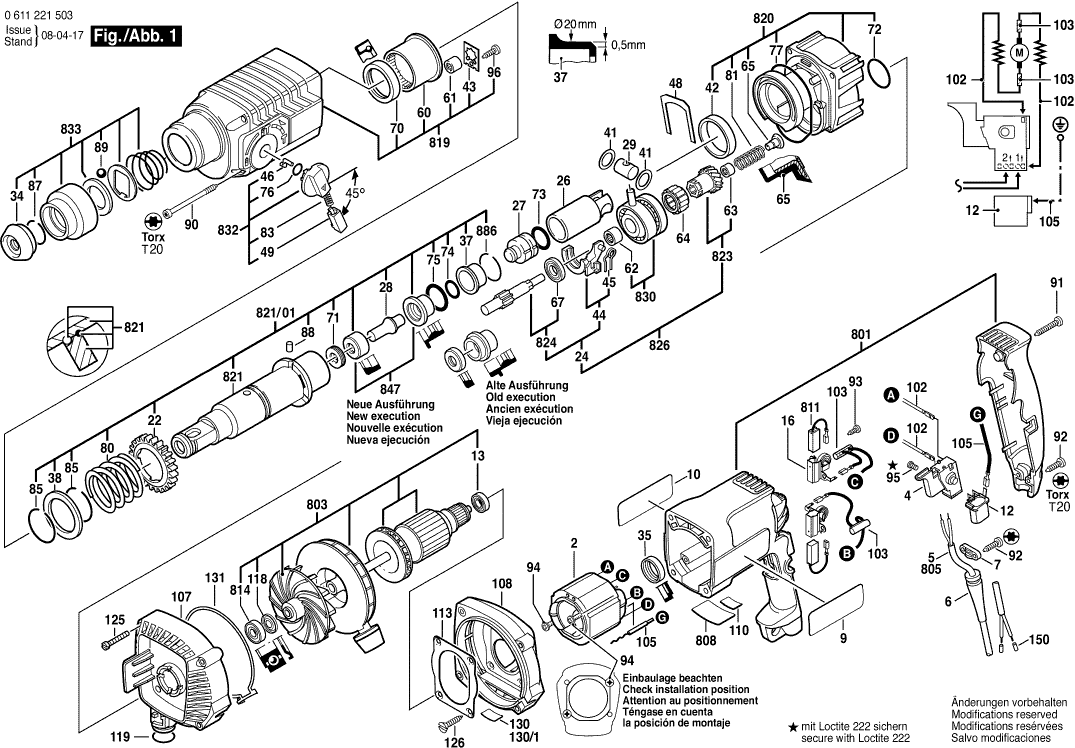 Lista de las piezas de repuesto de Bosch 0611221503 ( GAH500DSE )