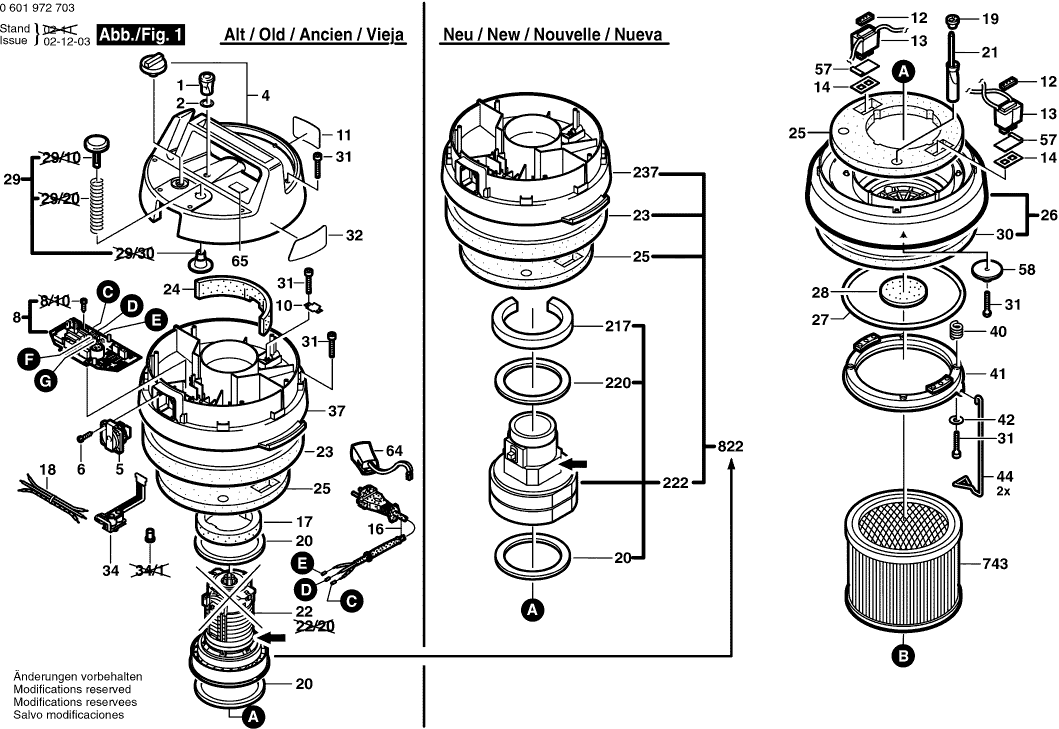 Lista de las piezas de repuesto de Bosch 0601972703 ( GAS10-50RFH )