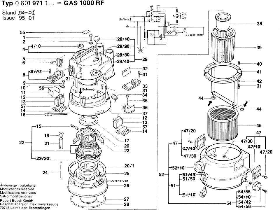 Lista de las piezas de repuesto de Bosch 0601971103 ( GAS1000RF )