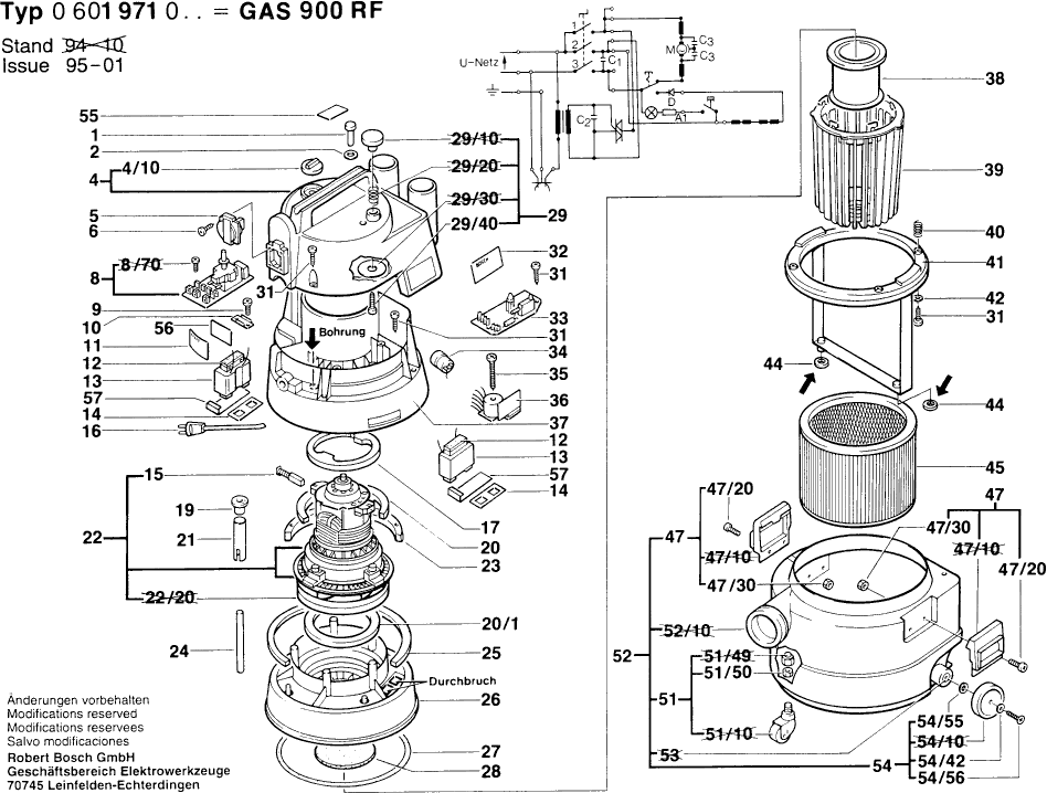 Lista de las piezas de repuesto de Bosch 0601971003 ( GAS900RF )