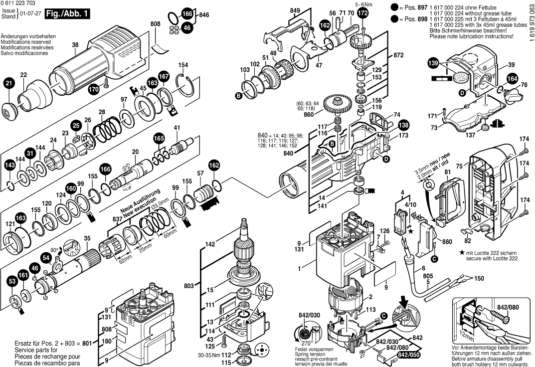 Aquí encontrará todas las piezas y dibujos técnicos disponibles de 'Bosch 0611223703 ( GBH10DC )'. Desde aquí podrá pedir todas las piezas deseadas directamente. Para muchas piezas de repuesto, es necesario pasar un pedido al fabricante. Dependiendo de la marca, el plazo de entrega puede variar entre una y cuatro semanas. Toda la información que tenemos está en nuestro sitio web. No podremos aconsejarle sobre lo que necesita hasta que entregue la máquina para su reparación. Tenga en cuenta lo siguiente a la hora de cursar su pedido: