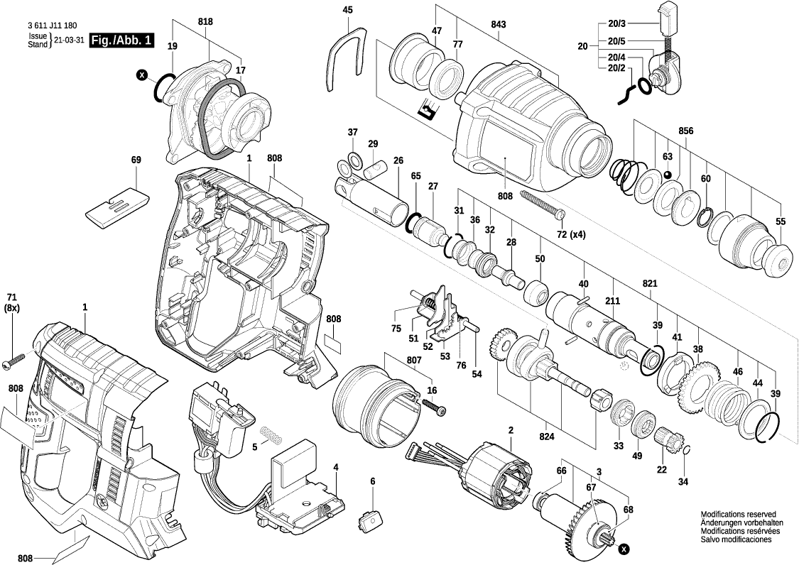 Lista de las piezas de repuesto de Bosch 3611J11120 ( GBH180-LI )