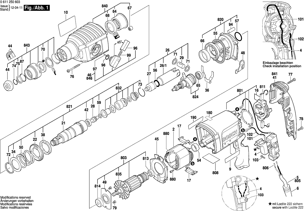 Aquí encontrará todas las piezas y dibujos técnicos disponibles de 'Bosch 0611250608 ( GBH2-22E )'. Desde aquí podrá pedir todas las piezas deseadas directamente. Para muchas piezas de repuesto, es necesario pasar un pedido al fabricante. Dependiendo de la marca, el plazo de entrega puede variar entre una y cuatro semanas. Toda la información que tenemos está en nuestro sitio web. No podremos aconsejarle sobre lo que necesita hasta que entregue la máquina para su reparación. Tenga en cuenta lo siguiente a la hora de cursar su pedido: