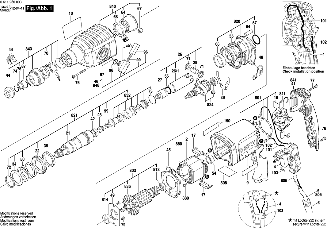 Aquí encontrará todas las piezas y dibujos técnicos disponibles de 'Bosch 0611250003 ( GBH2-22S )'. Desde aquí podrá pedir todas las piezas deseadas directamente. Para muchas piezas de repuesto, es necesario pasar un pedido al fabricante. Dependiendo de la marca, el plazo de entrega puede variar entre una y cuatro semanas. Toda la información que tenemos está en nuestro sitio web. No podremos aconsejarle sobre lo que necesita hasta que entregue la máquina para su reparación. Tenga en cuenta lo siguiente a la hora de cursar su pedido: