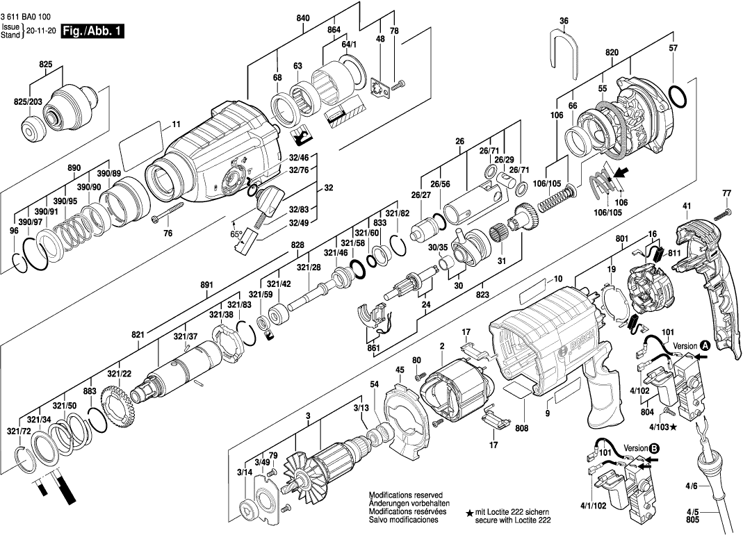 Lista de las piezas de repuesto de Bosch 3611BA0100 ( GBH2-24DF )