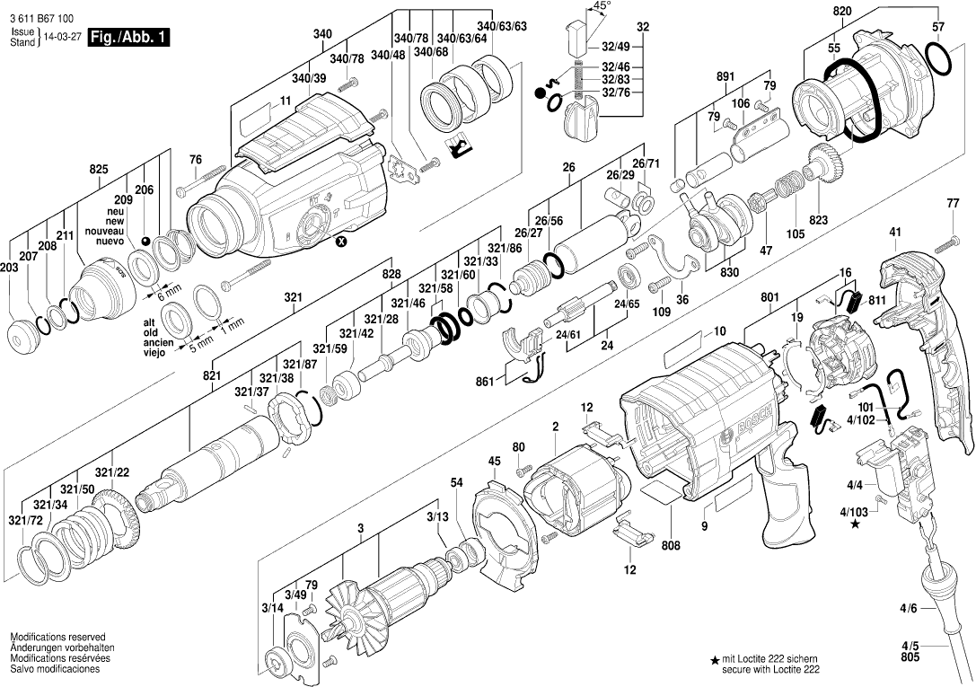 Aquí encontrará todas las piezas y dibujos técnicos disponibles de 'Bosch 3611B67140 ( GBH2-28DV )'. Desde aquí podrá pedir todas las piezas deseadas directamente. Para muchas piezas de repuesto, es necesario pasar un pedido al fabricante. Dependiendo de la marca, el plazo de entrega puede variar entre una y cuatro semanas. Toda la información que tenemos está en nuestro sitio web. No podremos aconsejarle sobre lo que necesita hasta que entregue la máquina para su reparación. Tenga en cuenta lo siguiente a la hora de cursar su pedido: