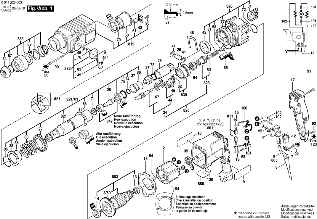 Lista de las piezas de repuesto de Bosch 0611226603 ( GBH2SE )