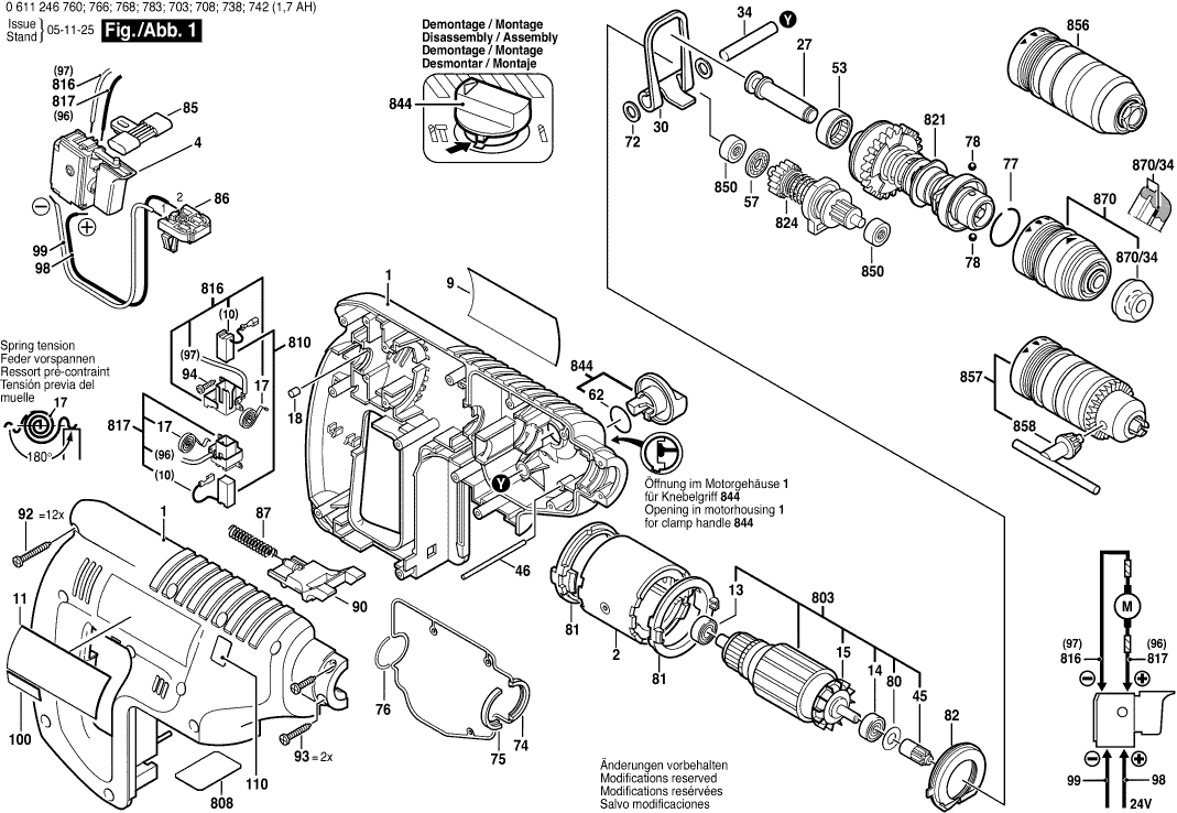 Lista de las piezas de repuesto de Bosch 0611246708 ( GBH24VFR )