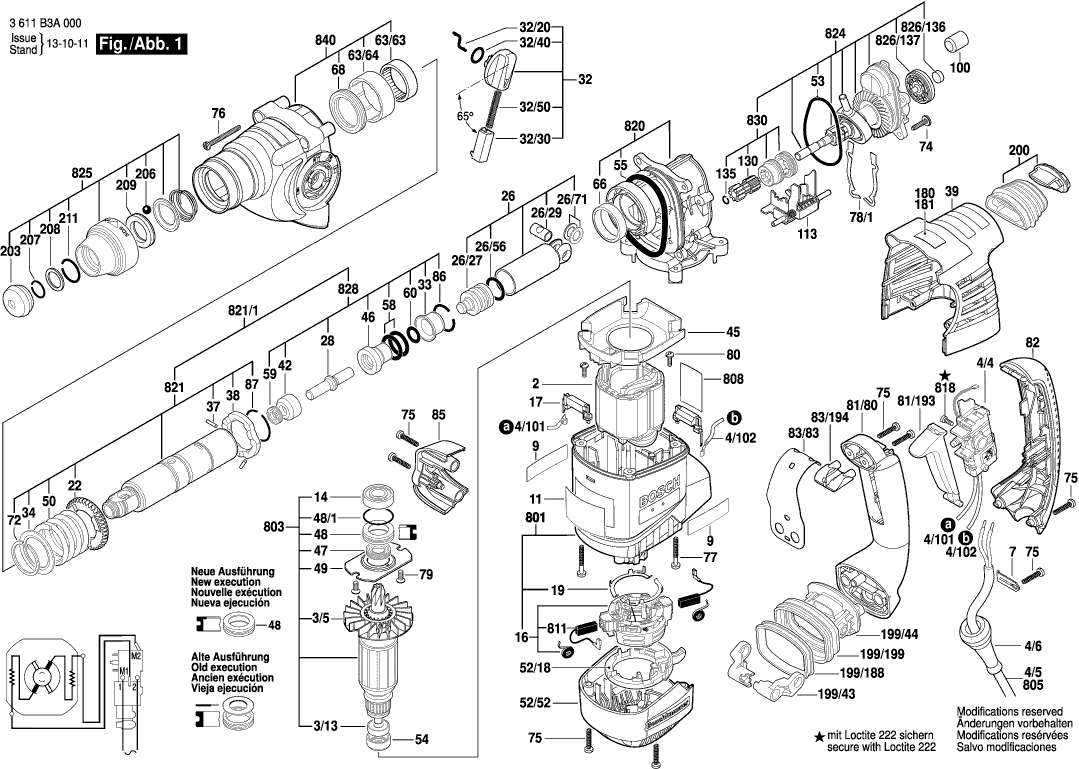 Dibujo técnico de los/las Bosch 3611B3A000 ( GBH3-28DRE )