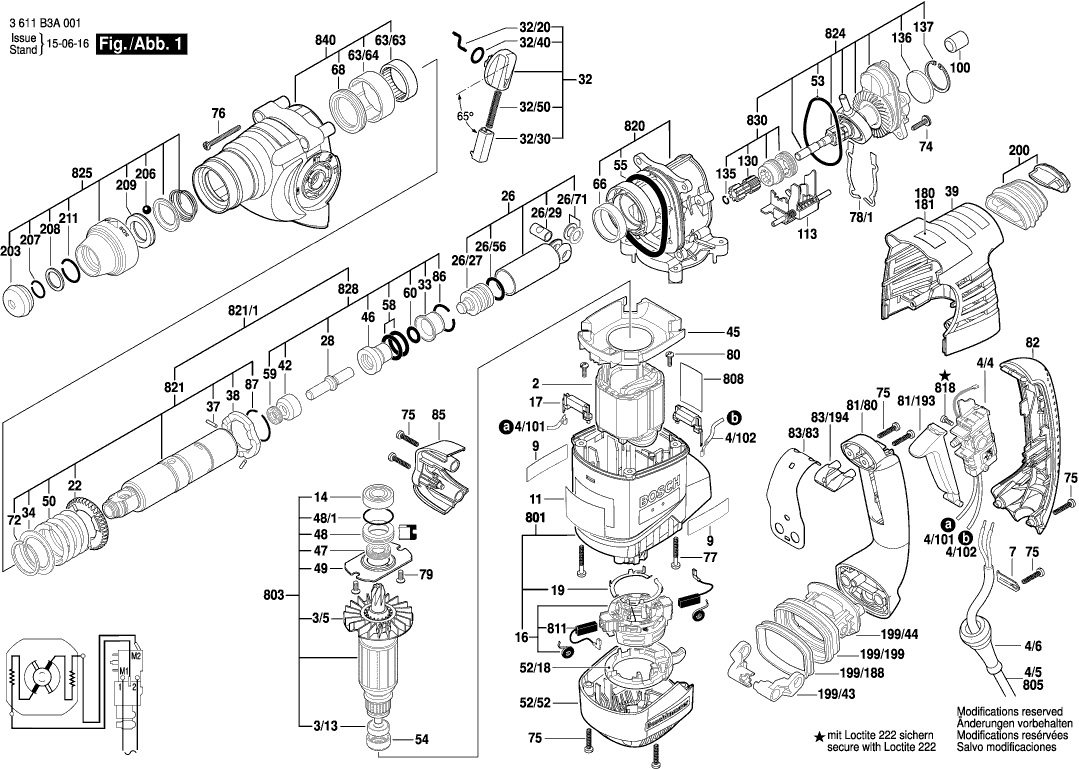 Dibujo técnico de los/las Bosch 3611B3A0H1 ( GBH3-28DRE )