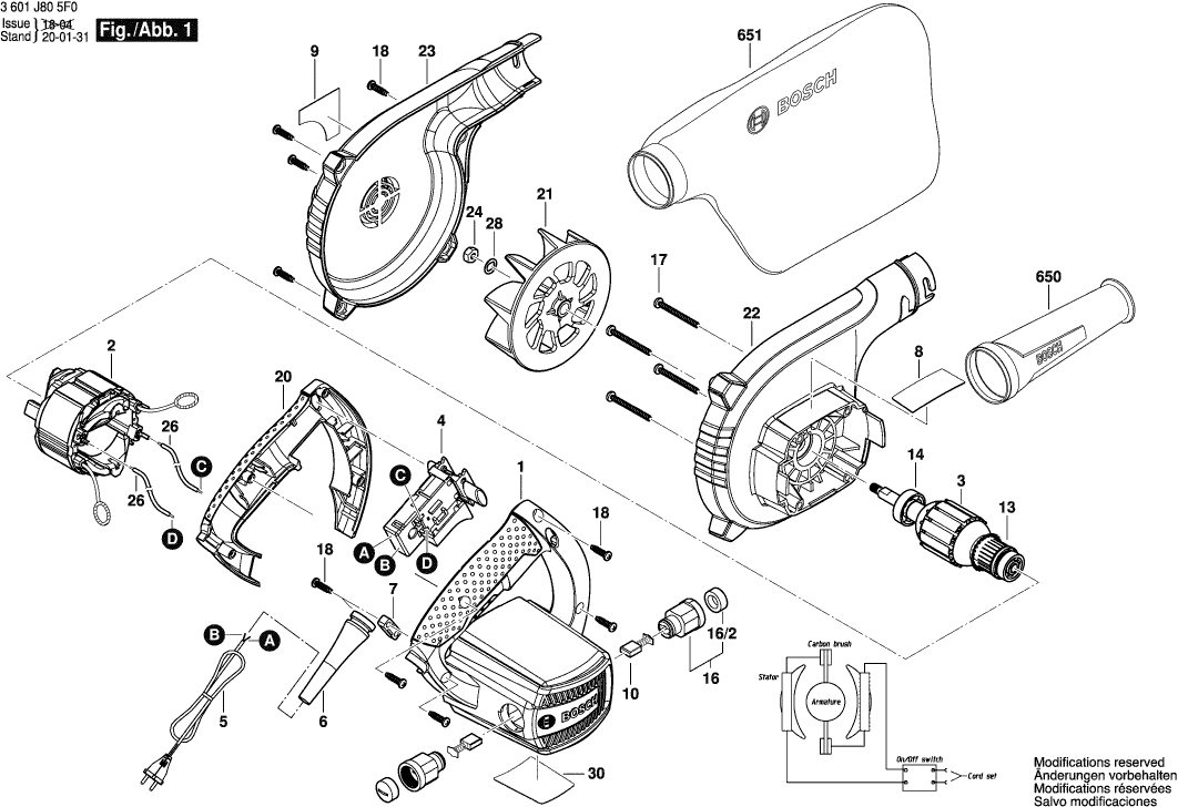 Lista de las piezas de repuesto de Bosch 3601J805F0 ( GBL620 )