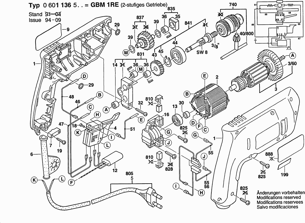 Lista de las piezas de repuesto de Bosch 0601136503 ( GBM1RE )
