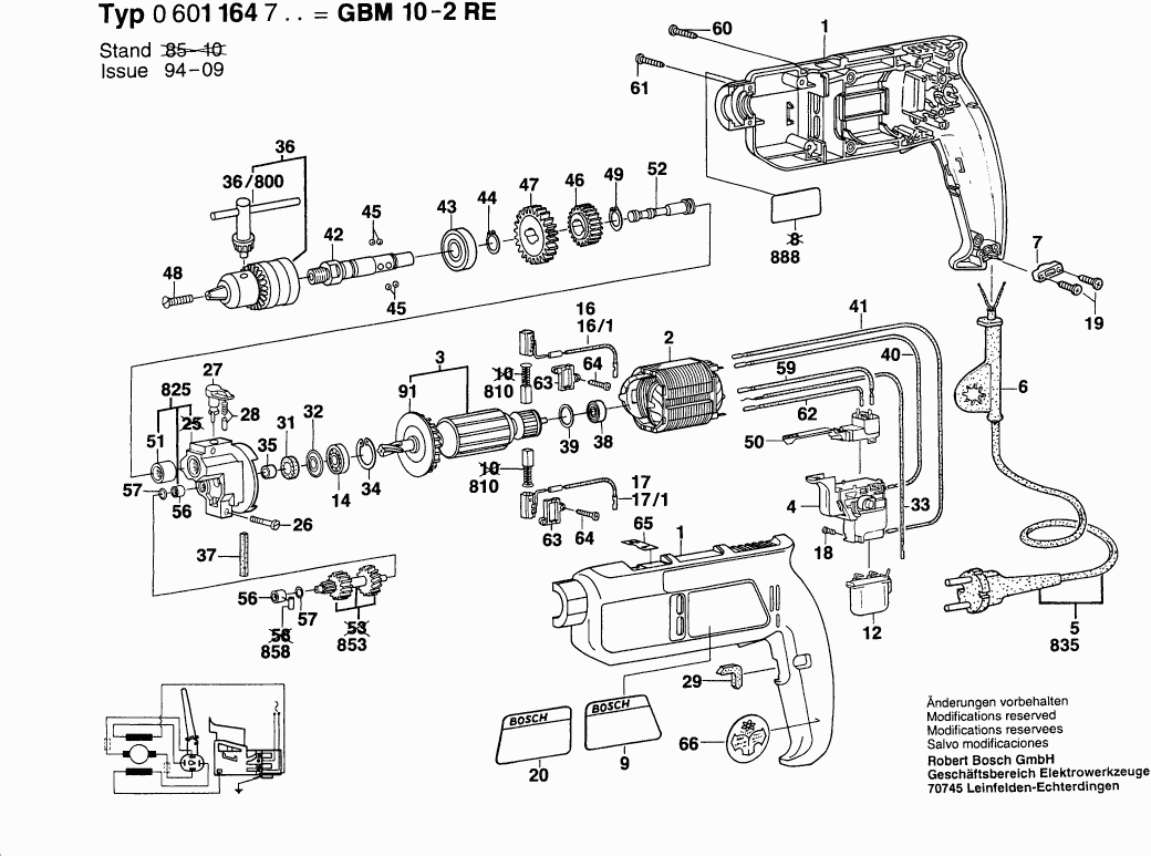 Dibujo técnico de los/las Bosch 0601164703 ( GBM10-2RE )