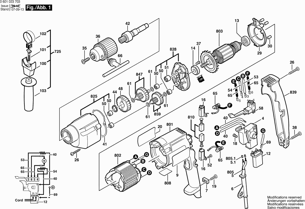 Lista de las piezas de repuesto de Bosch 0601023703 ( GBM13HRE )