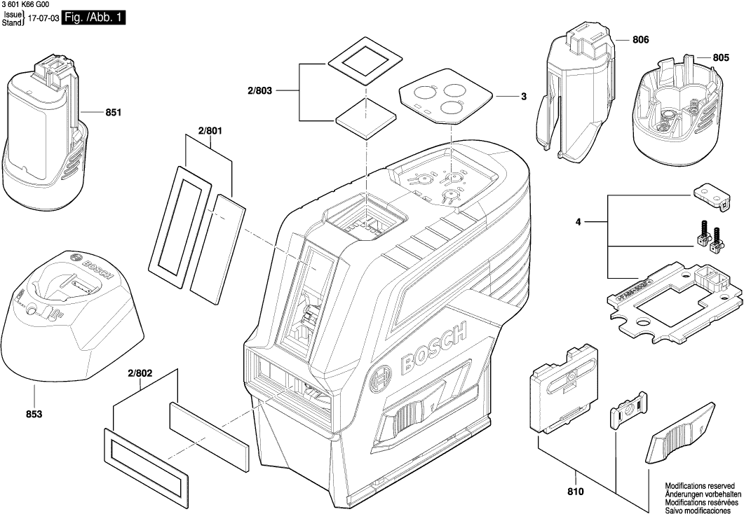 Lista de las piezas de repuesto de Bosch 3601K66H80 ( GCL2-50CG )