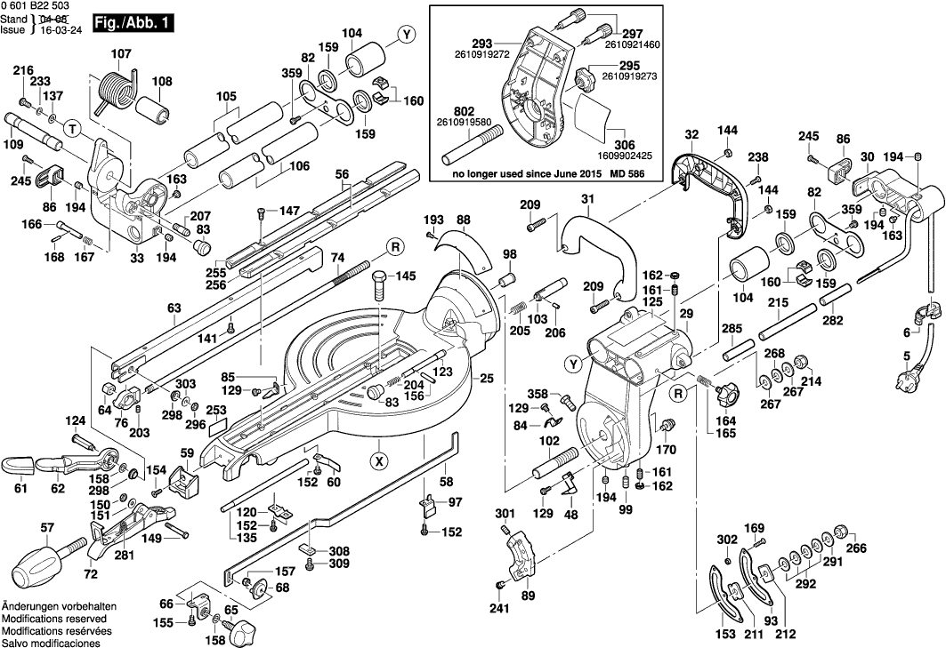 Aquí encontrará todas las piezas y dibujos técnicos disponibles de 'Bosch 0601B22532 ( GCM10SD )'. Desde aquí podrá pedir todas las piezas deseadas directamente. Para muchas piezas de repuesto, es necesario pasar un pedido al fabricante. Dependiendo de la marca, el plazo de entrega puede variar entre una y cuatro semanas. Toda la información que tenemos está en nuestro sitio web. No podremos aconsejarle sobre lo que necesita hasta que entregue la máquina para su reparación. Tenga en cuenta lo siguiente a la hora de cursar su pedido: