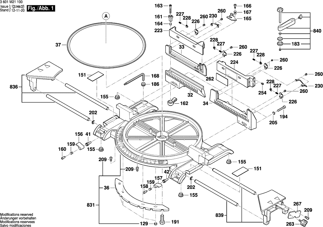 Lista de las piezas de repuesto de Bosch 3601M21100 ( GCM12JL )
