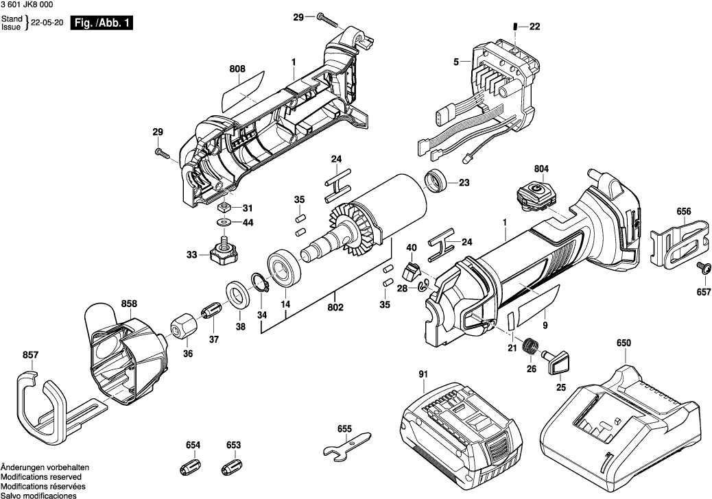 Lista de las piezas de repuesto de Bosch 3601JK8000 ( GCU18V-30 )