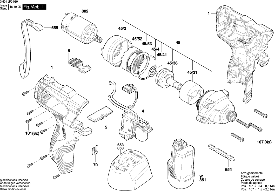 Lista de las piezas de repuesto de Bosch 3601JF0080 ( GDR120-LI )