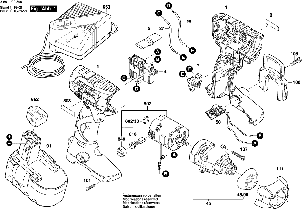 Lista de las piezas de repuesto de Bosch 3601J09300 ( GDR18V )