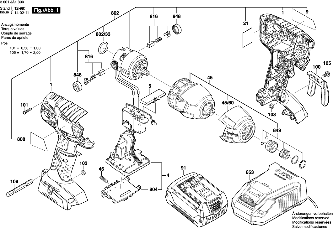 Dibujo técnico de los/las Bosch 3601JA1300 ( GDR18V-LI )