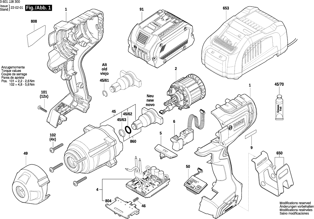 Lista de las piezas de repuesto de Bosch 3601JJ8300 ( GDS18V-1000 )
