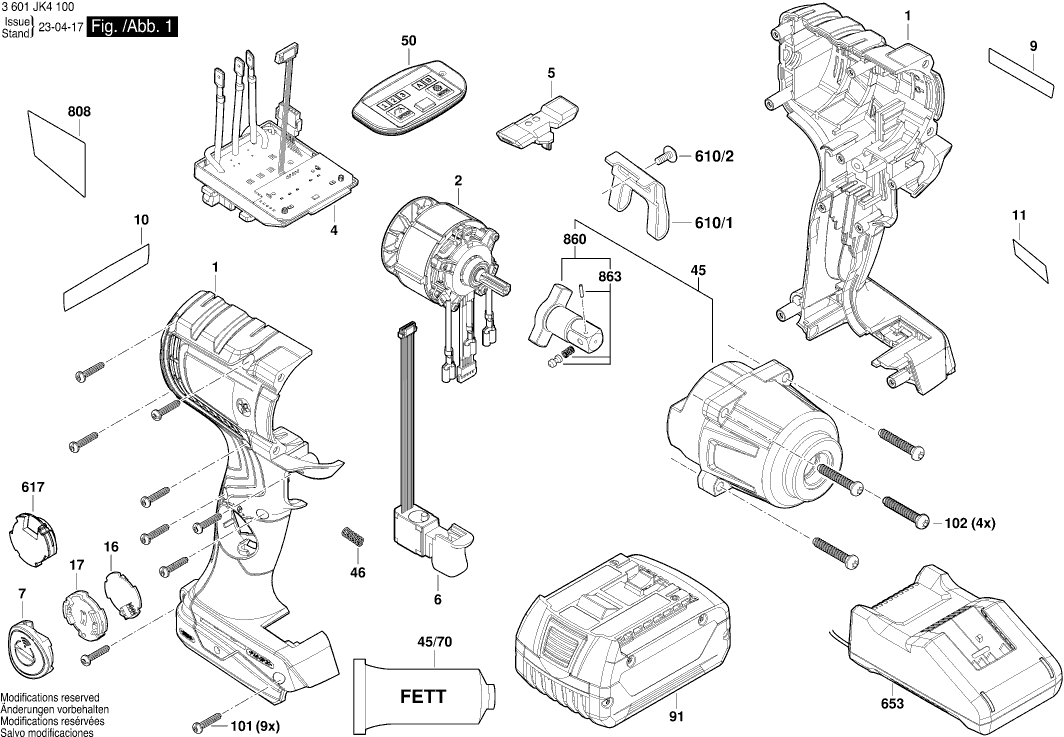 Aquí encontrará todas las piezas y dibujos técnicos disponibles de 'Bosch 3601JK4100 ( GDS18V-450PC )'. Desde aquí podrá pedir todas las piezas deseadas directamente. Para muchas piezas de repuesto, es necesario pasar un pedido al fabricante. Dependiendo de la marca, el plazo de entrega puede variar entre una y cuatro semanas. Toda la información que tenemos está en nuestro sitio web. No podremos aconsejarle sobre lo que necesita hasta que entregue la máquina para su reparación. Tenga en cuenta lo siguiente a la hora de cursar su pedido: