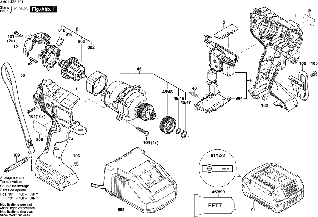 Dibujo técnico de los/las Bosch 3601JG5201 ( GDX18V-180 )