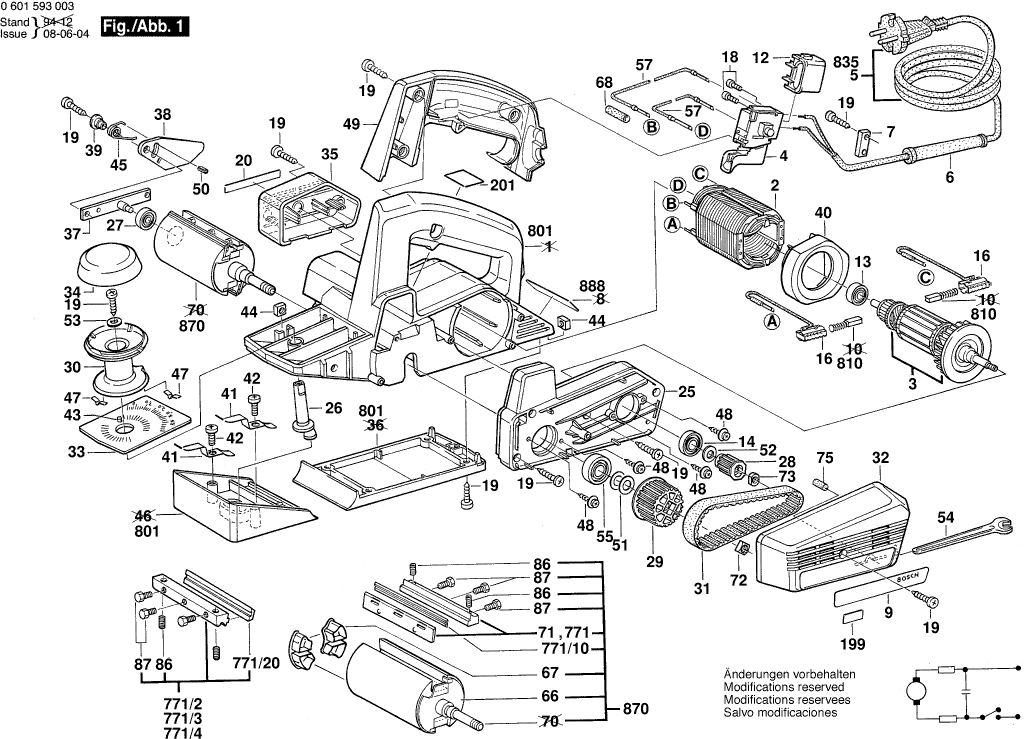 Aquí encontrará todas las piezas y dibujos técnicos disponibles de 'Bosch 0601593062 ( GHO31-82 )'. Desde aquí podrá pedir todas las piezas deseadas directamente. Para muchas piezas de repuesto, es necesario pasar un pedido al fabricante. Dependiendo de la marca, el plazo de entrega puede variar entre una y cuatro semanas. Toda la información que tenemos está en nuestro sitio web. No podremos aconsejarle sobre lo que necesita hasta que entregue la máquina para su reparación. Tenga en cuenta lo siguiente a la hora de cursar su pedido: