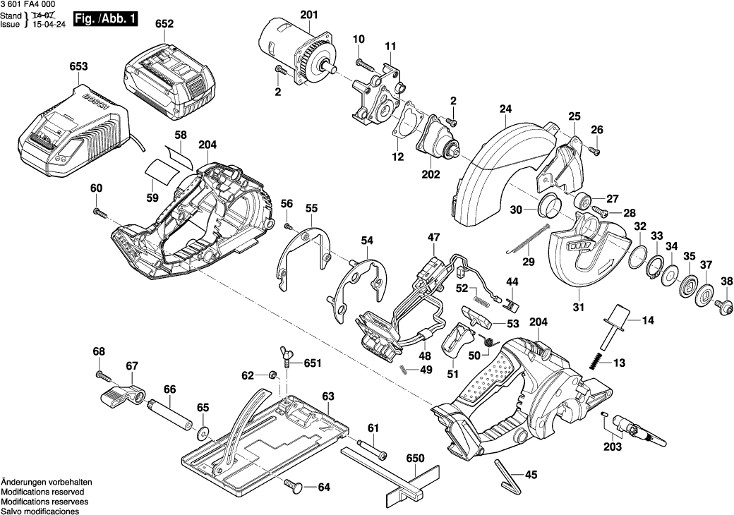 Lista de las piezas de repuesto de Bosch 3601FA4000 ( GKM18V-LI )
