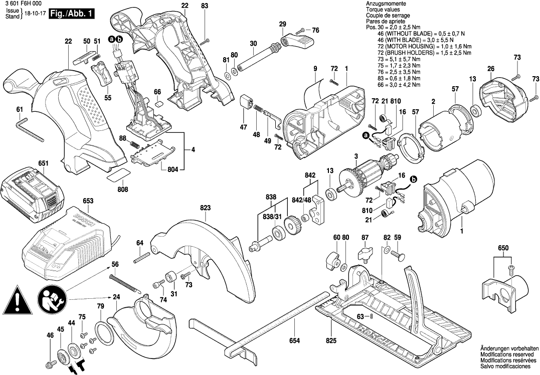 Lista de las piezas de repuesto de Bosch 3601F6H001 ( GKS18V-LI )
