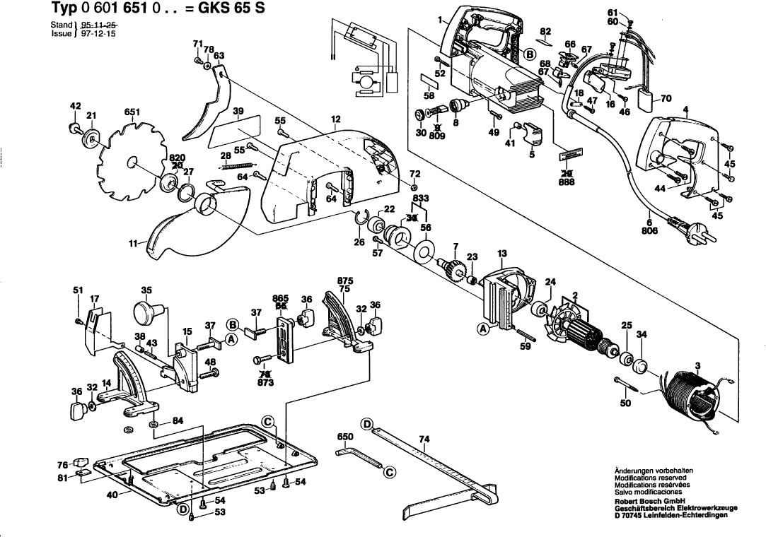 Lista de las piezas de repuesto de Bosch 0601651003 ( GKS65S )