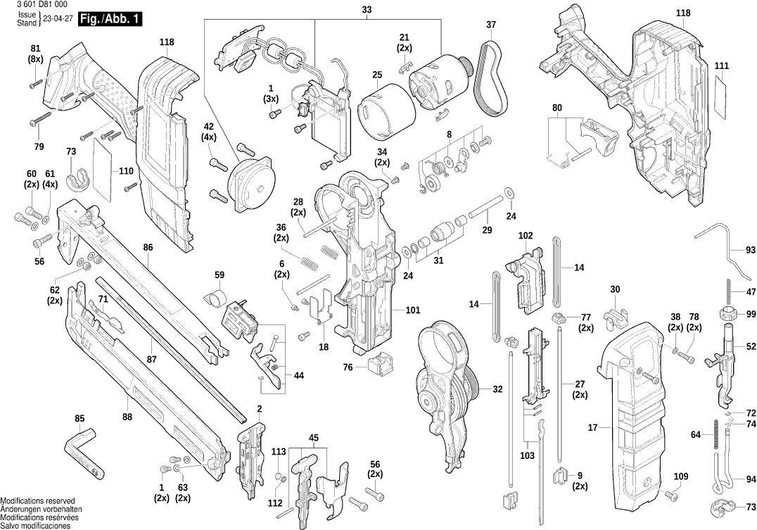 Aquí encontrará todas las piezas y dibujos técnicos disponibles de 'Bosch 3601D81000 ( GNH18V-64M )'. Desde aquí podrá pedir todas las piezas deseadas directamente. Para muchas piezas de repuesto, es necesario pasar un pedido al fabricante. Dependiendo de la marca, el plazo de entrega puede variar entre una y cuatro semanas. Toda la información que tenemos está en nuestro sitio web. No podremos aconsejarle sobre lo que necesita hasta que entregue la máquina para su reparación. Tenga en cuenta lo siguiente a la hora de cursar su pedido:
