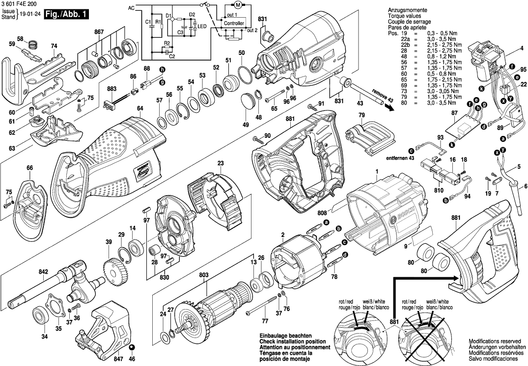 Lista de las piezas de repuesto de Bosch 3601F4E201 ( GSA1300PCE )