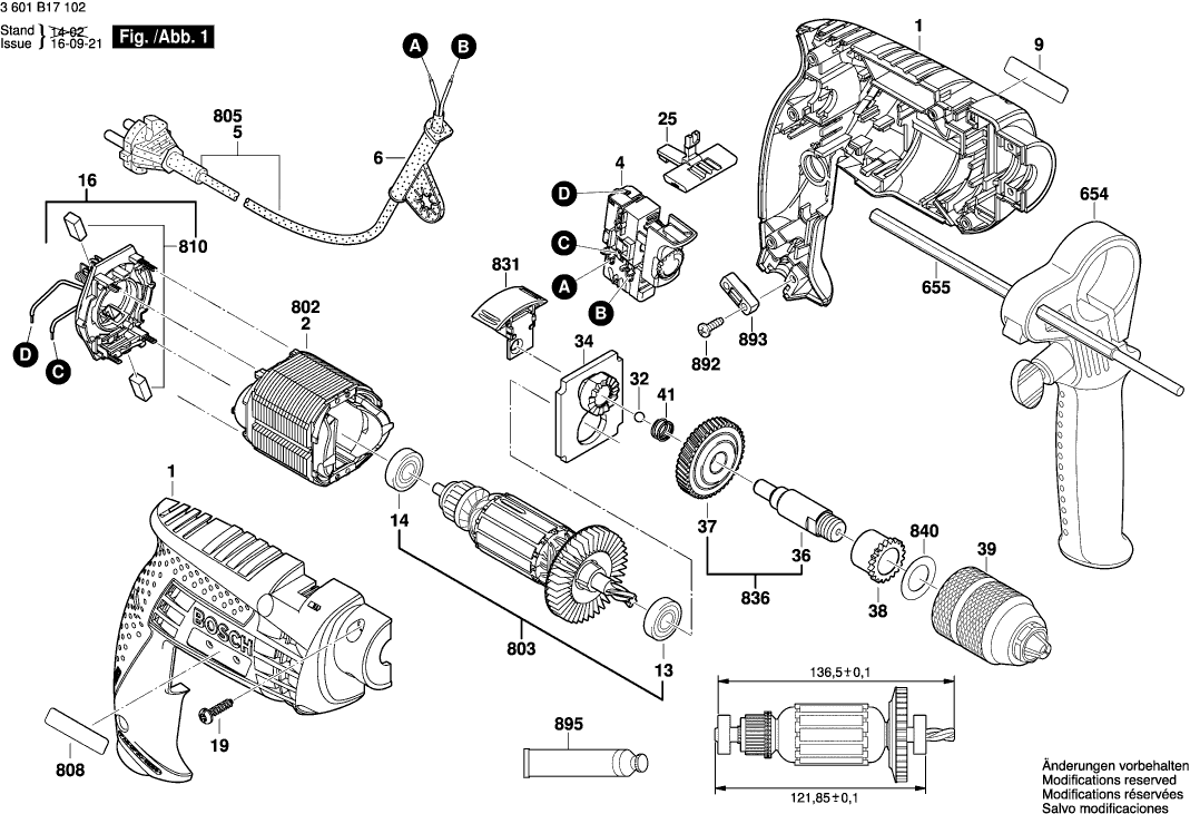 Dibujo técnico de los/las Bosch 3601B17107 ( GSB13RE )