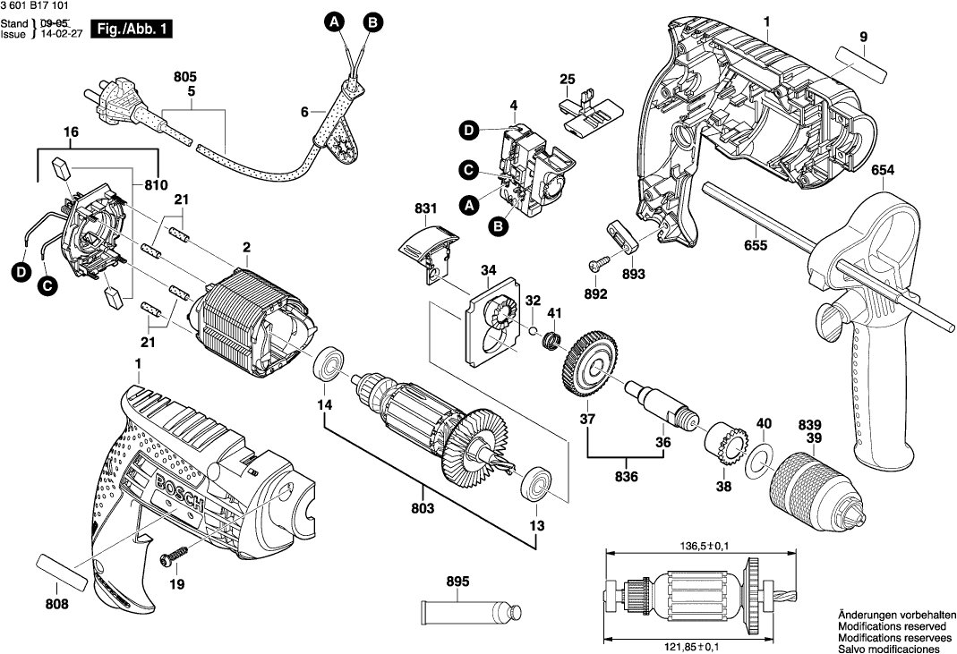 Dibujo técnico de los/las Bosch 3601B17101 ( GSB13RE )