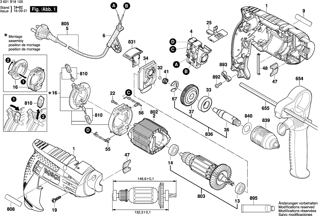 Dibujo técnico de los/las Bosch 3601B18105 ( GSB1600 )