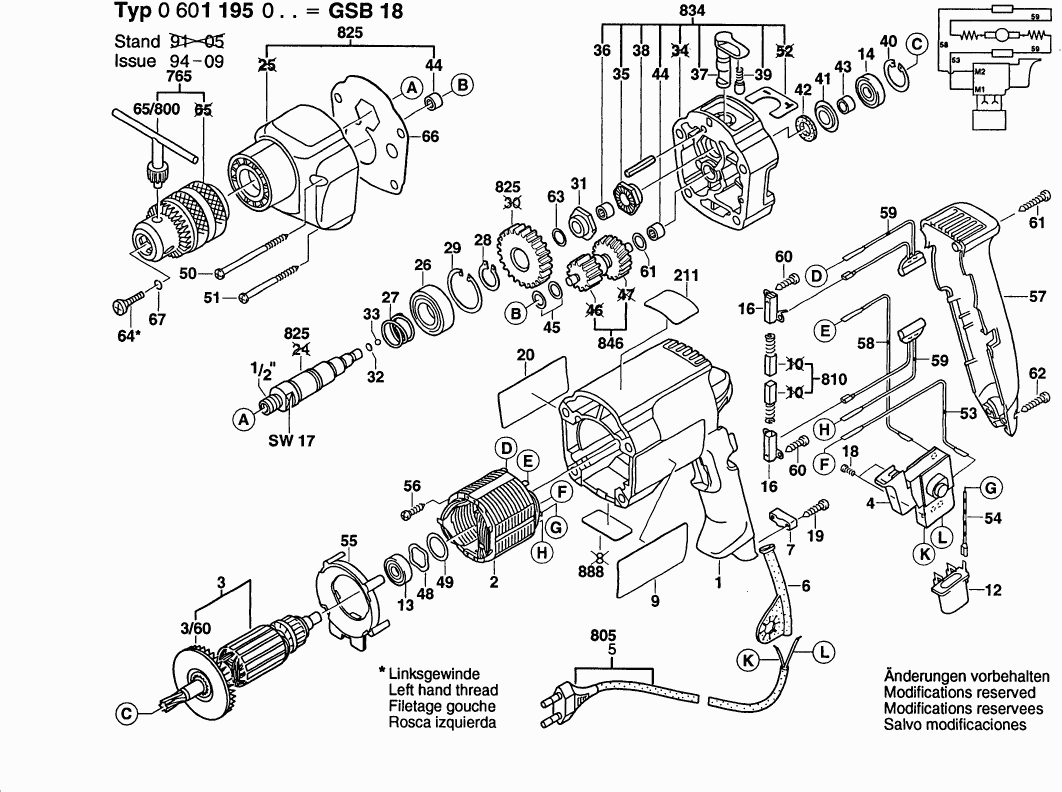 Lista de las piezas de repuesto de Bosch 0601195003 ( GSB18 )
