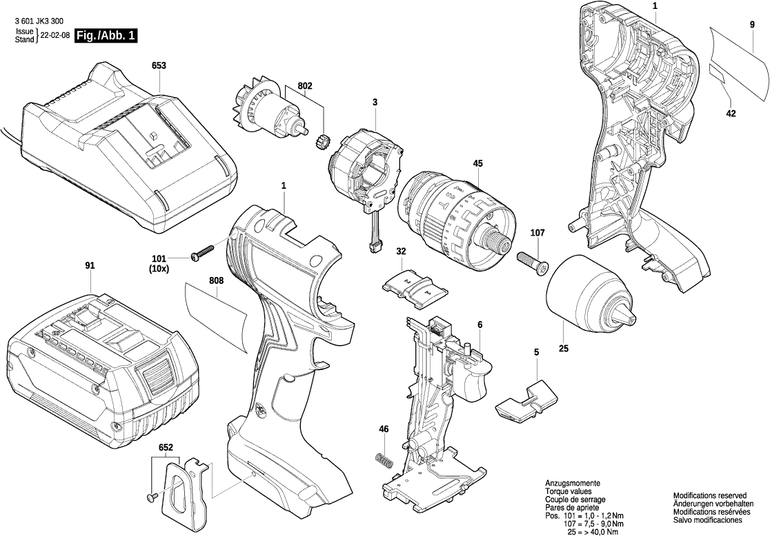 Dibujo técnico de los/las Bosch 3601JK3300 ( GSB18V-45 )