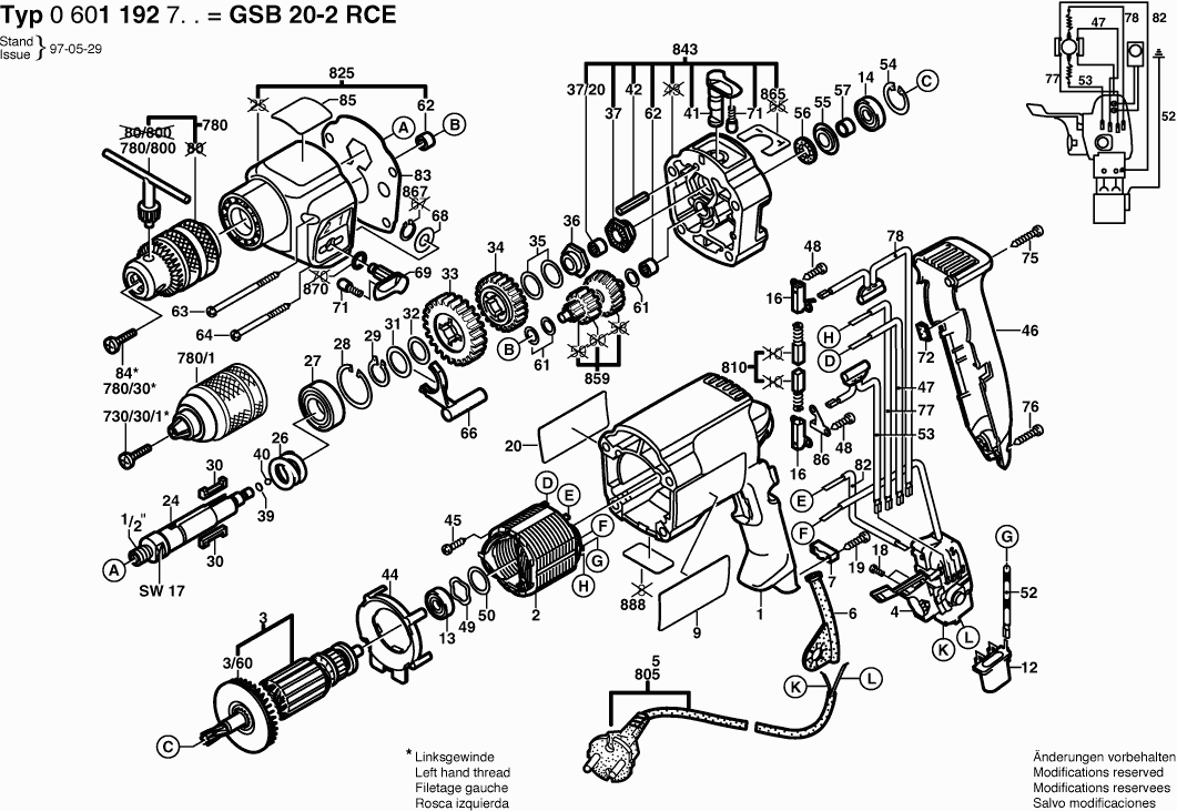Lista de las piezas de repuesto de Bosch 0601192703 ( GSB20-2RCE )