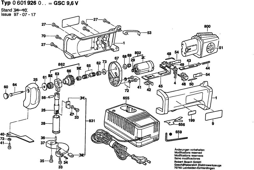 Aquí encontrará todas las piezas y dibujos técnicos disponibles de 'Bosch 0601926027 ( GSC9,6V )'. Desde aquí podrá pedir todas las piezas deseadas directamente. Para muchas piezas de repuesto, es necesario pasar un pedido al fabricante. Dependiendo de la marca, el plazo de entrega puede variar entre una y cuatro semanas. Toda la información que tenemos está en nuestro sitio web. No podremos aconsejarle sobre lo que necesita hasta que entregue la máquina para su reparación. Tenga en cuenta lo siguiente a la hora de cursar su pedido: