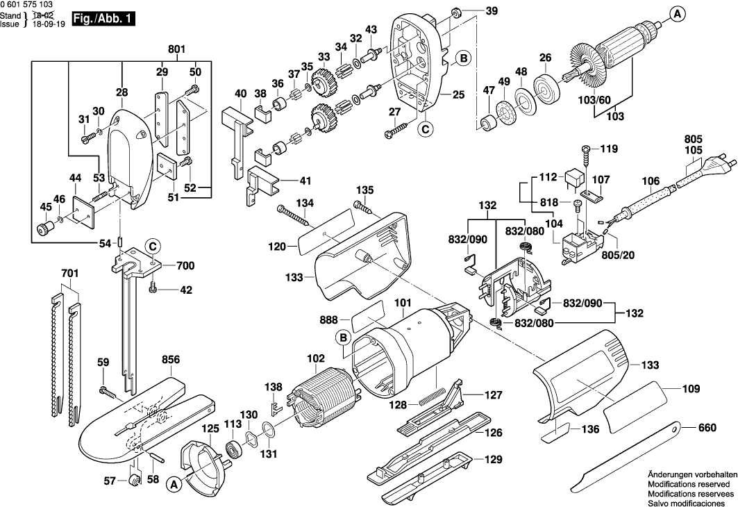 Lista de las piezas de repuesto de Bosch 0601575108 ( GSG300 )