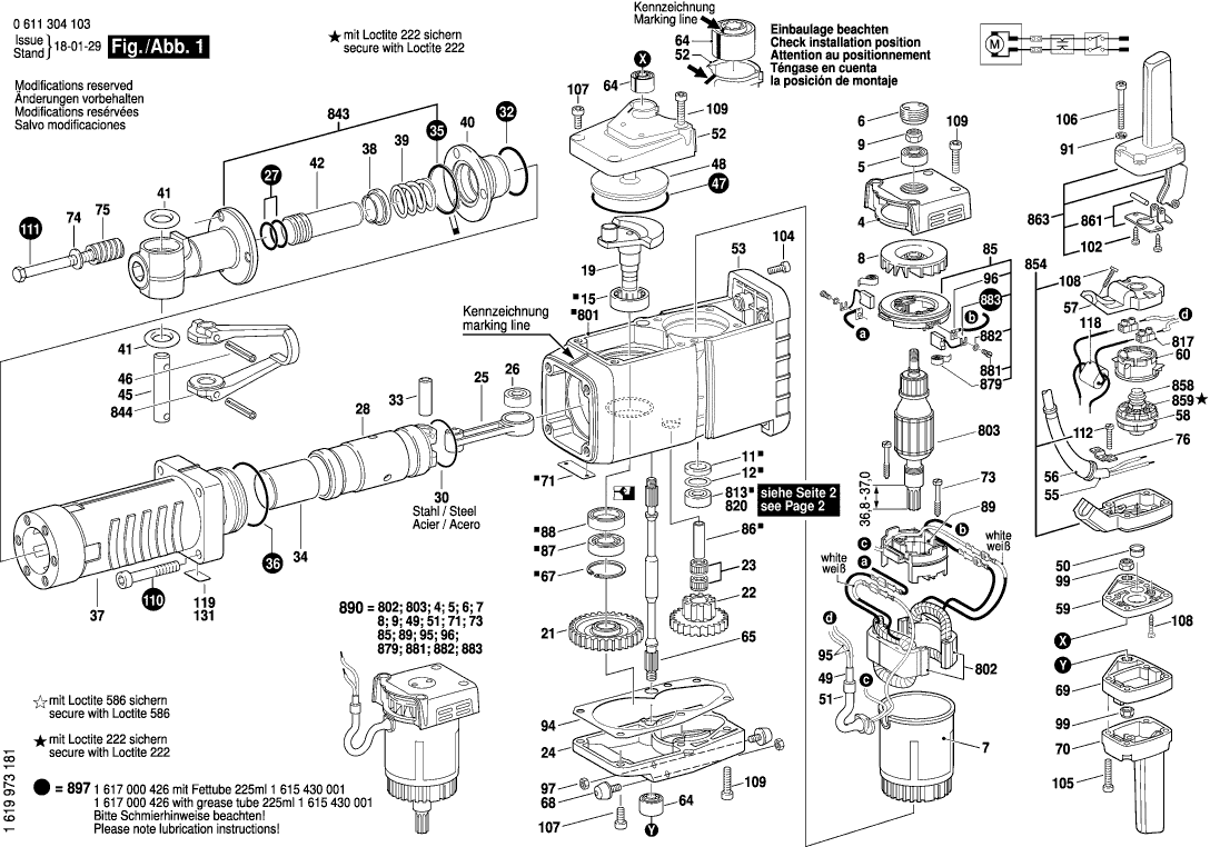 Aquí encontrará todas las piezas y dibujos técnicos disponibles de 'Bosch 0611304103 ( GSH27 )'. Desde aquí podrá pedir todas las piezas deseadas directamente. Para muchas piezas de repuesto, es necesario pasar un pedido al fabricante. Dependiendo de la marca, el plazo de entrega puede variar entre una y cuatro semanas. Toda la información que tenemos está en nuestro sitio web. No podremos aconsejarle sobre lo que necesita hasta que entregue la máquina para su reparación. Tenga en cuenta lo siguiente a la hora de cursar su pedido: