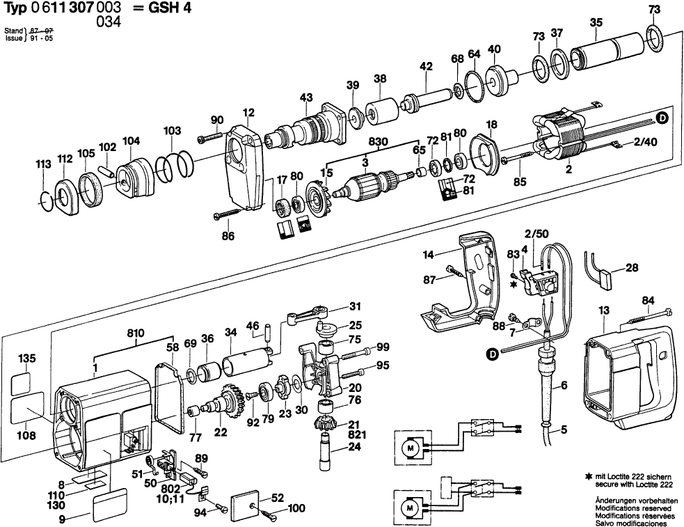 Aquí encontrará todas las piezas y dibujos técnicos disponibles de 'Bosch 0611307003 ( GSH4 )'. Desde aquí podrá pedir todas las piezas deseadas directamente. Para muchas piezas de repuesto, es necesario pasar un pedido al fabricante. Dependiendo de la marca, el plazo de entrega puede variar entre una y cuatro semanas. Toda la información que tenemos está en nuestro sitio web. No podremos aconsejarle sobre lo que necesita hasta que entregue la máquina para su reparación. Tenga en cuenta lo siguiente a la hora de cursar su pedido: