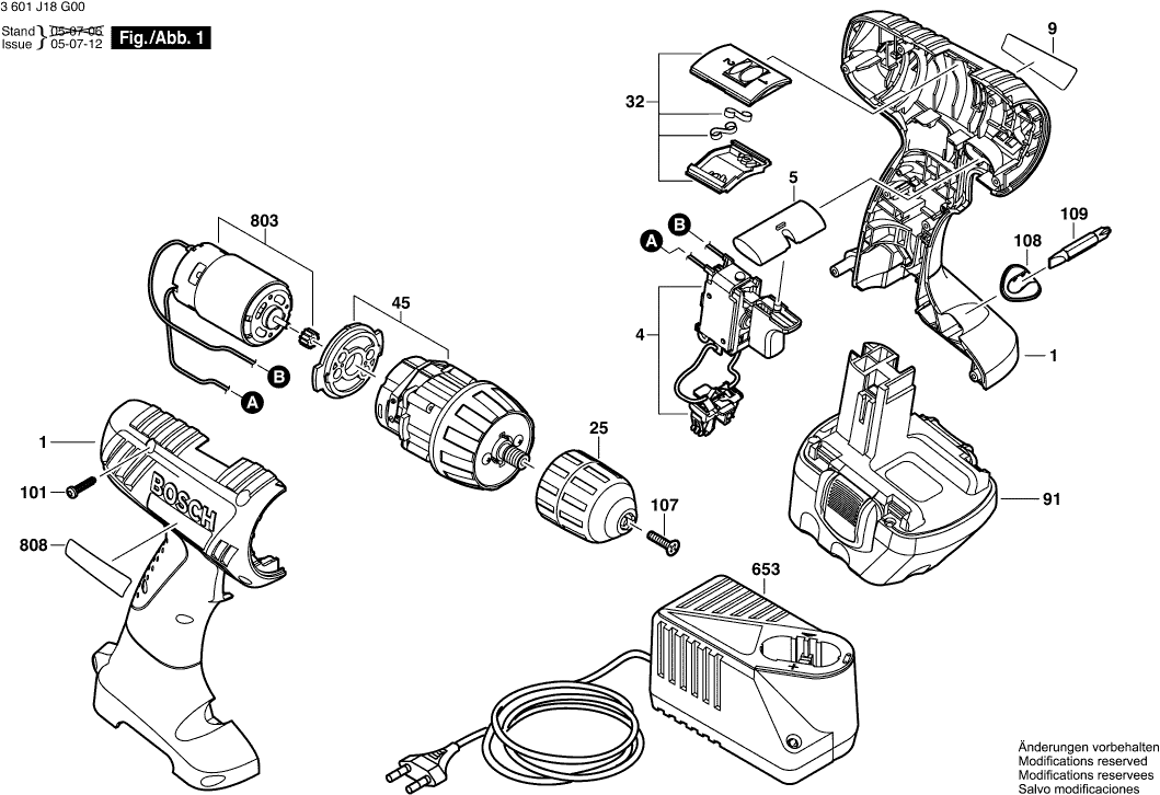 Lista de las piezas de repuesto de Bosch 3601J18J20 ( GSR12-2 )