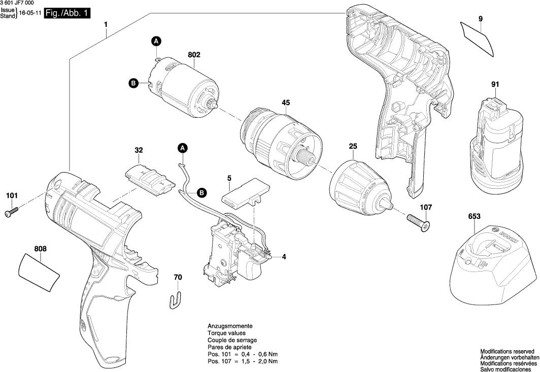 Dibujo técnico de los/las Bosch 3601JF7000 ( GSR120-LI )